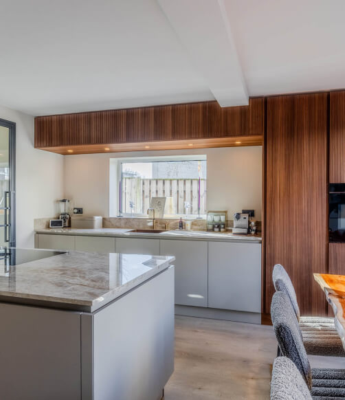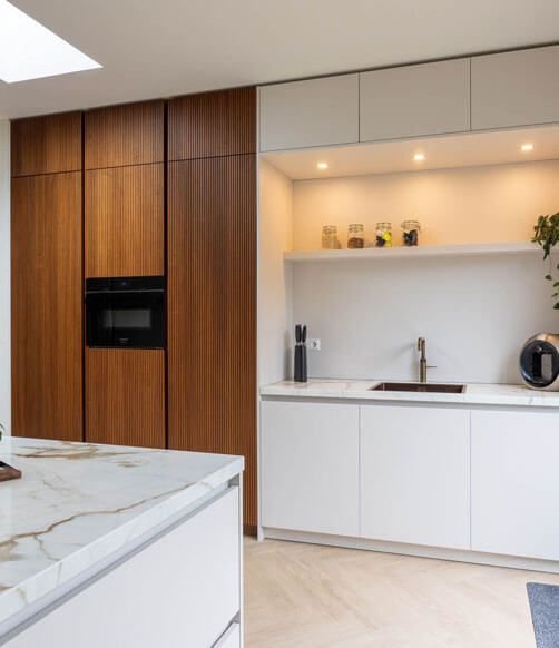 en nemen alle tijd om uit te leggen wat de mogelijkheden zijn. Met zoveel aanbod kan het wat overweldigend lijken, maar tijdens de uitgebreide afspraken werden we zorgvuldig door alle keuzes geleid. We kozen voor een keuken waarbij de doorgang naar de bijkeuken is verwerkt in de kastenwand en hebben hiermee een prachtig uniek ontwerp, waar we al veel complimenten over hebben gekregen.