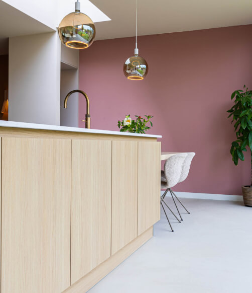 Met de oude indeling waren we tevreden, maar door goed mee te denken zijn er toch nog wat wijzigingen aangebracht, die het gebruik en de uitstraling ten goede komen. Niels kwam in het ontwerptraject met enkele mooie oplossingen voor onze persoonlijke wensen.